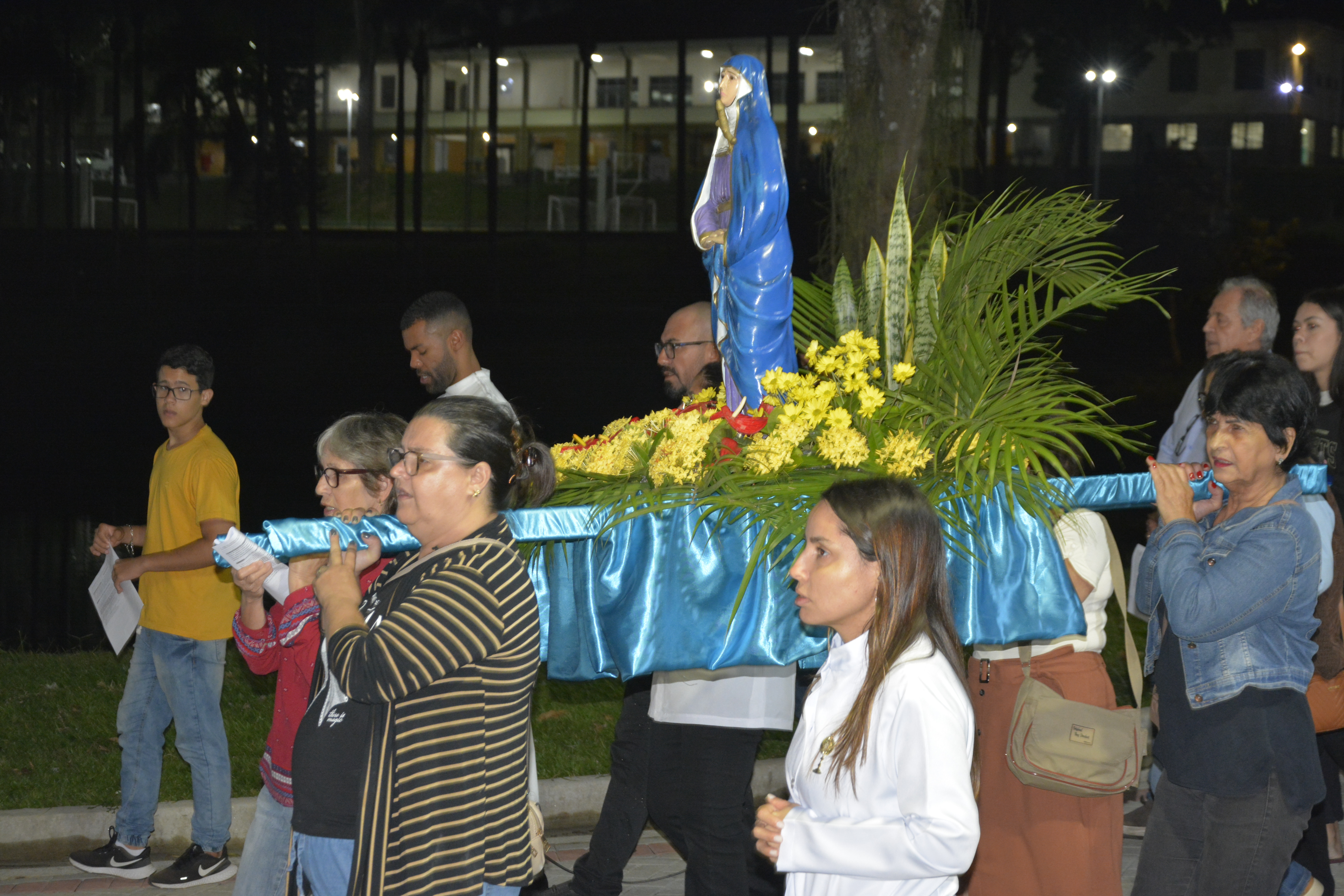 Em meio a cantos e orações, os dois cortejos se encontraram diante da Réplica da Casa de Dom Bosco, proporcionando um momento profundamente simbólico e comovente, que recorda o encontro de Maria com seu Filho no caminho da cruz.