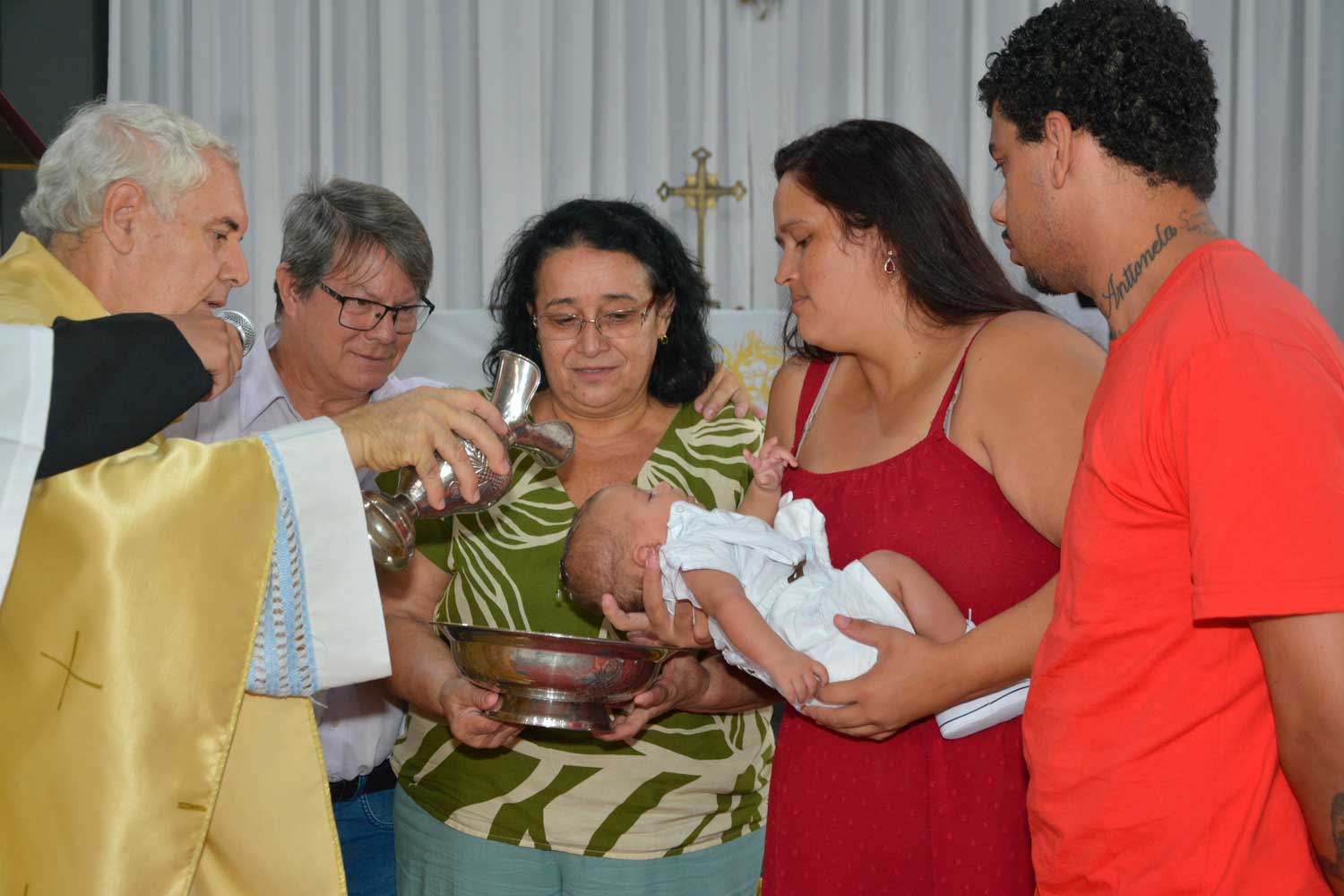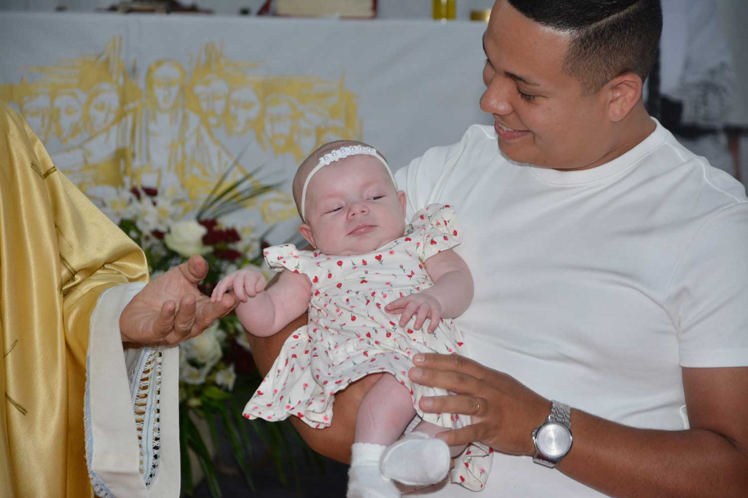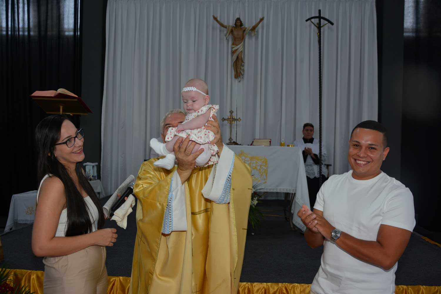 Na sequência, aconteceu a apresentação da pequena Maitê, filha do casal Jefferson e Lethicia, colaboradora da Obra Salesiana. Os ritos reforçaram o sentido da Páscoa como vida nova em Cristo e renovação da fé na comunidade.